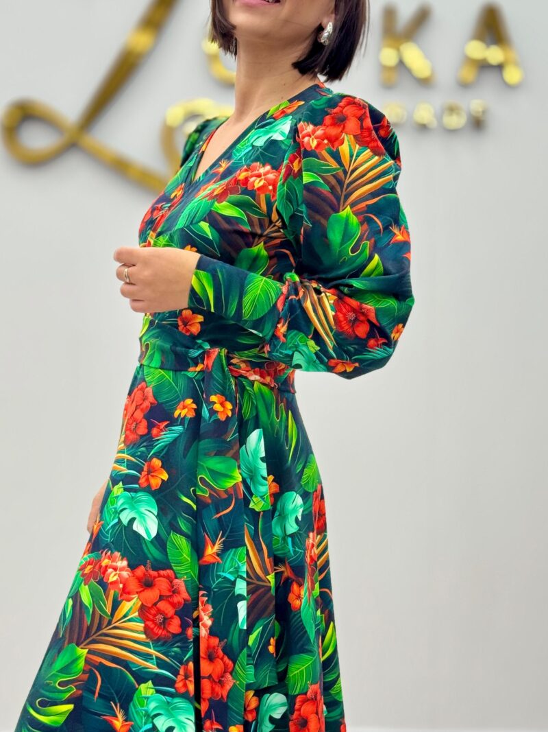 To sukienka, która sprawdzi się zarówno na wieczornym przyjęciu, jak i podczas niedzielnego brunchu. Uniwersalny krój pozwala na dowolne stylizacje – dodaj szpilki i biżuterię dla wieczorowej elegancji lub połącz z trampkami i dżinsową kurtką, by stworzyć miejski, casualowy look.