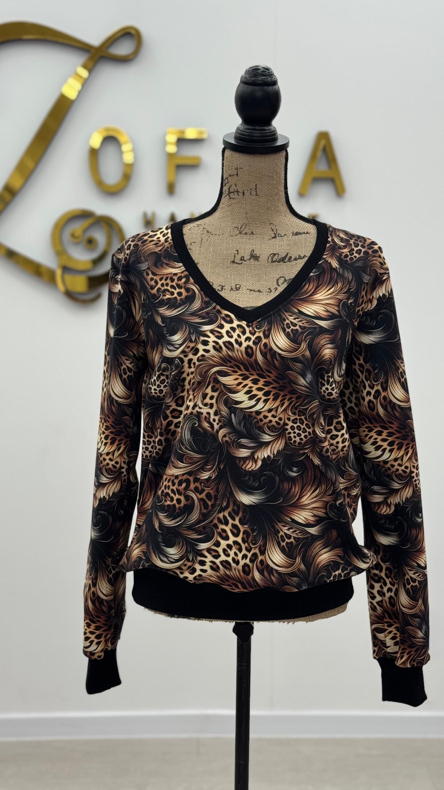 Marzysz o bluzie, która łączy w sobie wygodę i kobiecość? Ta wyjątkowa propozycja z dekoltem w serek to idealne połączenie klasycznej formy z subtelnym akcentem. Wykonana z wysokiej jakości dresówki pętelkowej (95% bawełna, 5% elastan), zachwyca miękkością i przyjemną w dotyku strukturą. Dekolt w kształcie litery V delikatnie wydłuża szyję i podkreśla kobiecość, nie rezygnując przy tym z casualowego charakteru. Ściągacze w pasie i na rękawach zapewniają komfortowe wykończenie, a luźny, ale przemyślany krój pięknie układa się na sylwetce. To wszechstronna propozycja, która sprawdzi się zarówno w biurze, jak i podczas weekendowych spotkań. Możesz ją stylizować ze spódnicą do pracy, z jeansami na co dzień czy z eleganckimi spodniami na wieczorne wyjście. Dekolt w serek świetnie komponuje się z delikatną biżuterią, pozwalając na tworzenie bardziej wyrafinowanych zestawień. Każda bluza powstaje w zgodzie z filozofią slow fashion – jest szyta ręcznie, z najwyższą dbałością o detale i jakość wykończenia. Materiał zachowuje swoje właściwości nawet po wielu praniach, pozostając niezawodną częścią Twojej garderoby na długie lata.